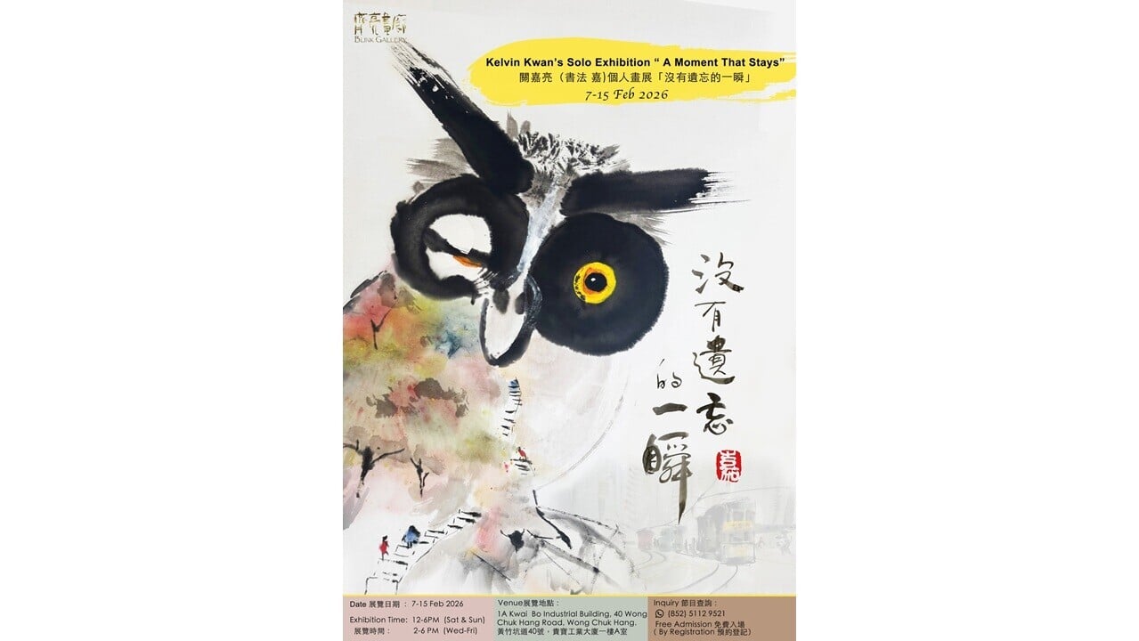 由移居澳洲的香港藝術家關嘉亮(書法嘉)主辦、齊亮畫廊策展的個人畫展《沒有遺忘的一瞬》,將於 2026 年 2 月 7 日至 15 日於黃竹坑 Blink Art Gallery 舉行。展覽免費開放預約入場,將展示藝術家結合水墨及書法的作品,寫意而率性,描繪承載香港熟悉日常片段,紅Van、渡海小輪、叮叮車等城市風景。展場內特別設有「抒發」站,鼓勵公眾親自拿起筆墨創作,表達生活感悟。藝術家更會於指定時段駐場,為觀眾分享的內容即席配上水墨插畫,以筆墨作為交流橋樑;適逢馬年新春前夕,展覽期間的週末將免費派發限量版創意揮春,每人限取一張,送完即止。