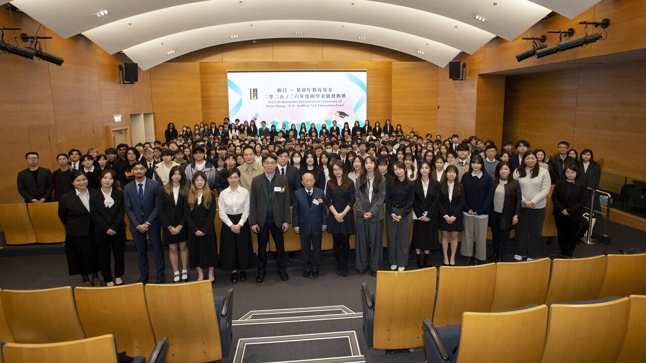 「新昌 — 葉庚年教育基金」2025/26年度助學金頒發典禮早前已圓滿舉行。主禮嘉賓兼基金信託人法團主席陳祖澤博士勉勵受惠同學在知識型經濟與創科迅速發展的時代,除了學術成就,更需具備同理心、社會責任感與國際視野。本年度,獲頒發助學金的同學共有374名,資助金額合共叁佰柒拾肆萬港元。期盼這些資助能在學業和知識上幫助同學們,使他們有所得益,從而回饋社會。而新昌 — 葉庚年教育基金亦將秉承創立宗旨,將資金作出適當的投資和運用,與時並進,積極回應並持續支持香港教育發展的需要,為社會、為未來,作出積極貢獻。