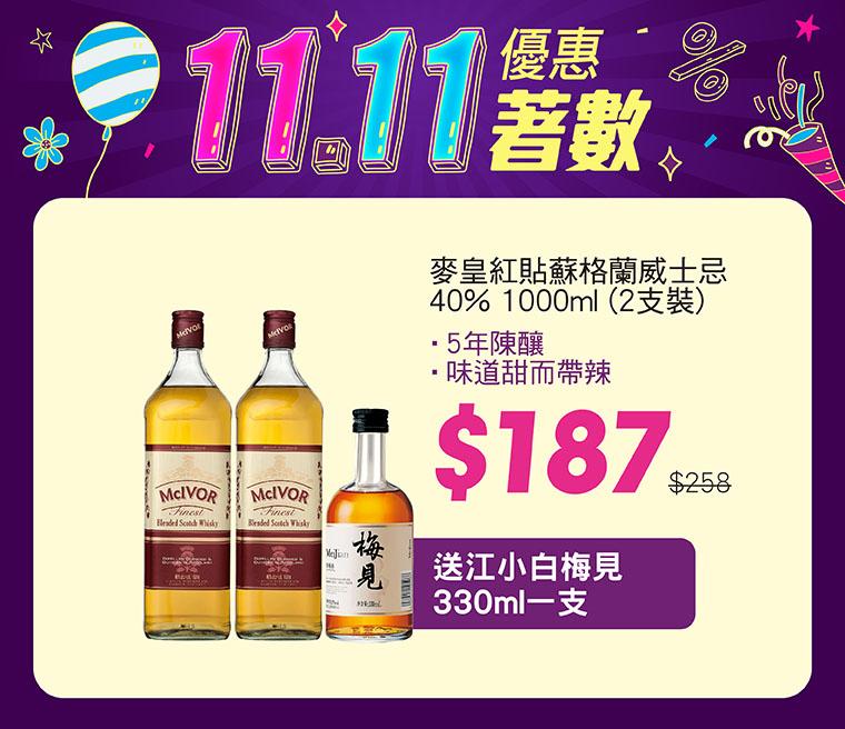 原價$258 雙11優惠折實價只售$187