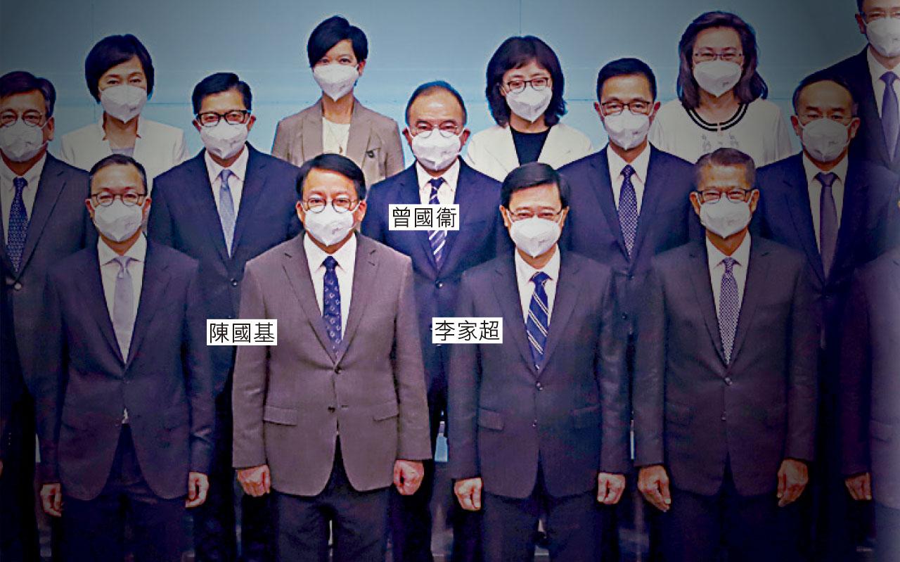 陳國基和曾國衞在亮相會上,分別站李家超的旁邊及後方。(資料圖片)