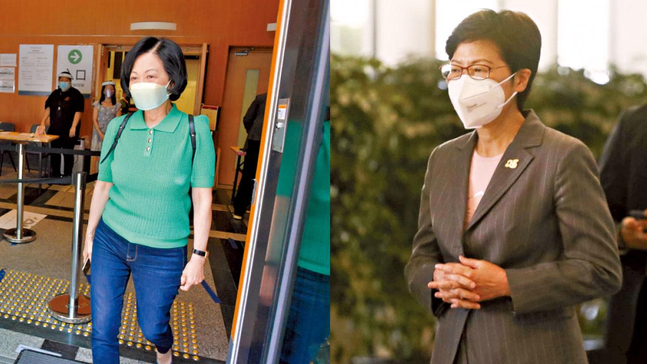 特首林鄭月娥(右)與立法會議員葉劉淑儀分別到政總及禮頓山做核酸檢測。