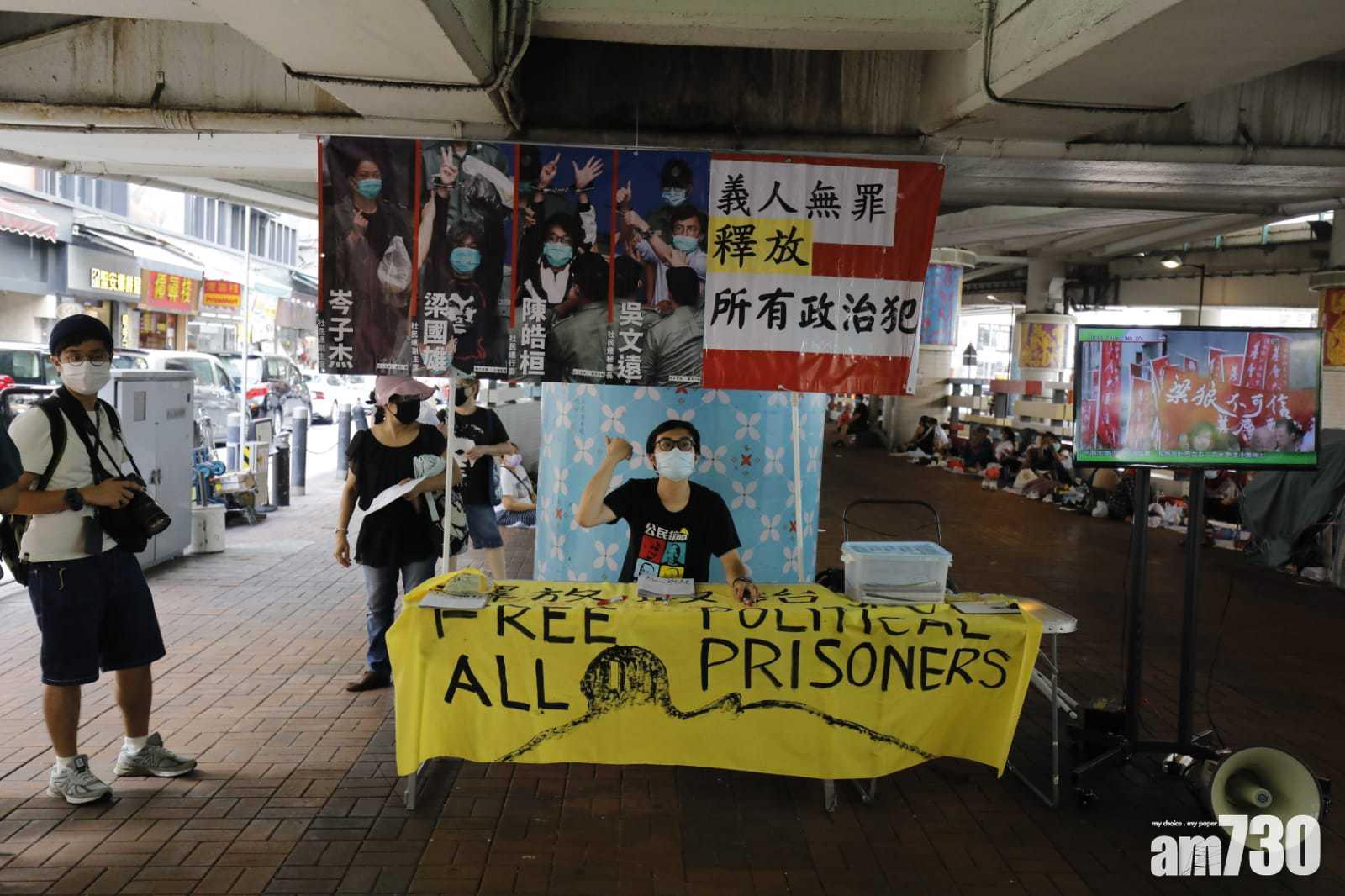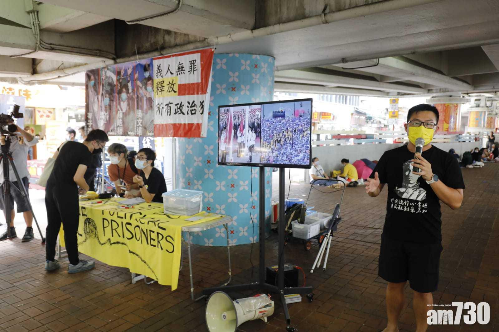 至於今早有發動遊行的社民連,則於鵝頸橋下設街站,警方在旁戒備及攝錄過程。