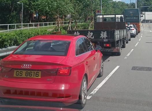 上水半小時內發生至少3宗車禍導致粉嶺大塞車。(fb「車cam L(香港群組)」圖片)