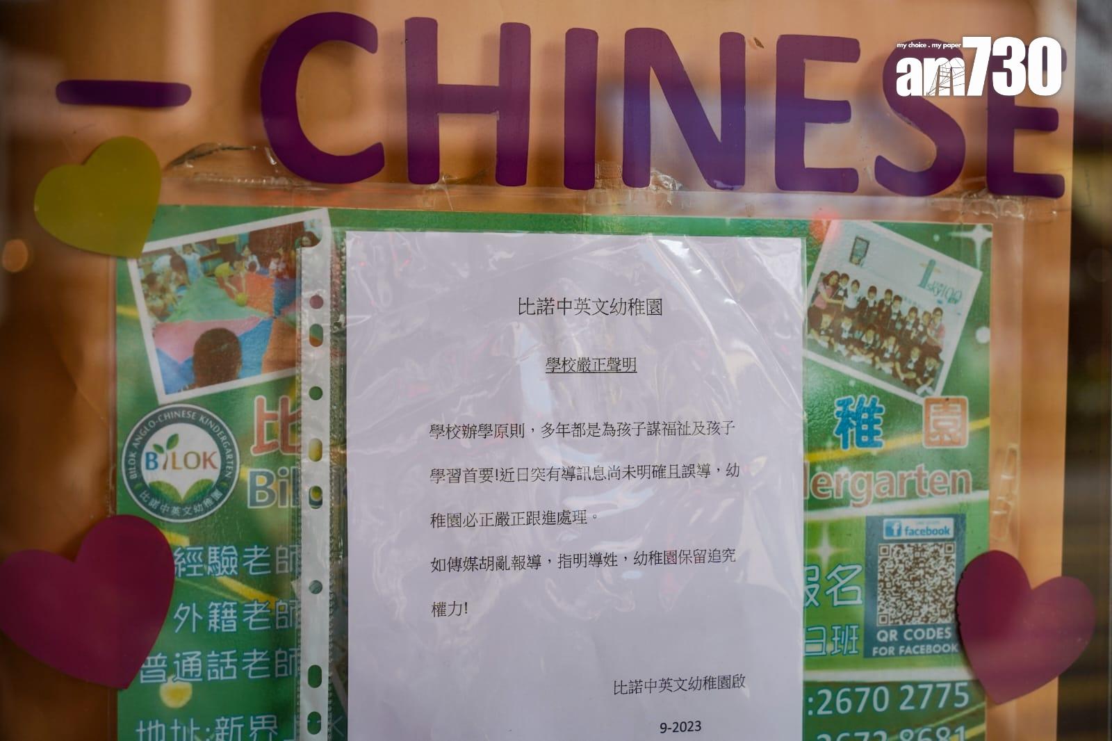 上水比諾中英文幼稚園負責人涉偽造文件被捕 家長憂學校結業校方貼聲明 (李睿哲攝)