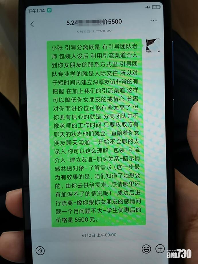 逝去感情如何留得住?千祈咪信「情感挽回大師」!上海「澎湃新聞」報道,當地一名男子「牛牛」去年7月與女友分手,微信、電話都被對方封鎖,無計可施之下上網尋找挽回感情方法,很快就看到宣稱「一對一私人定制,百分百挽回愛」的情感諮詢機構廣告,並急急添加對方微信作出諮詢。牛牛先後投入三萬四千多元(人民幣,下同)委託對方「箍煲」,直到今年4月仍未能與前女友復合,才意識到被騙,並於5月2日報警。警方深入調查後,上月2日在涉事機構所在的山東拘捕69人,檢獲180多部犯案手機,初步核實涉及500多宗案件,涉案金額700多萬元,受害者遍及全國。