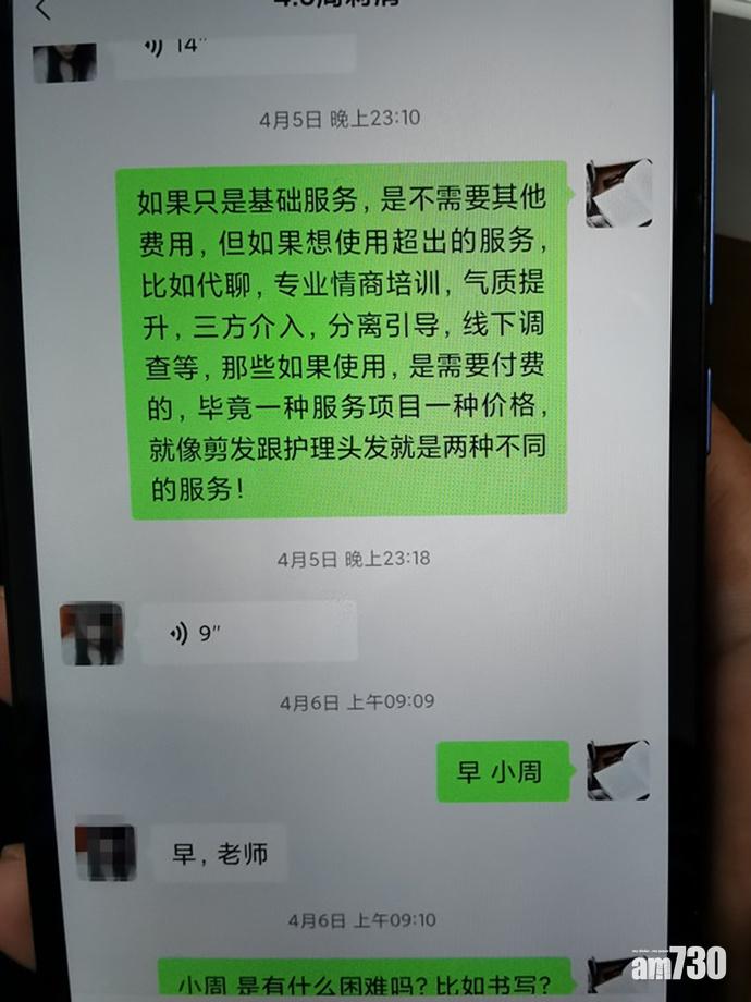 牛牛同意,與對方簽訂電子合約及繳交3,280元費用,隨即獲安排「情感挽回專家」進行情感輔導。自稱「心理諮詢師」的專家對牛牛稱,已與其前女友取得聯絡,然後陸續以「發現前女友已有新男友,需要進一步工作引導」、「前女友已動搖,需聯繫現男友結束感情」等理由,要求牛牛再支付3萬多元。