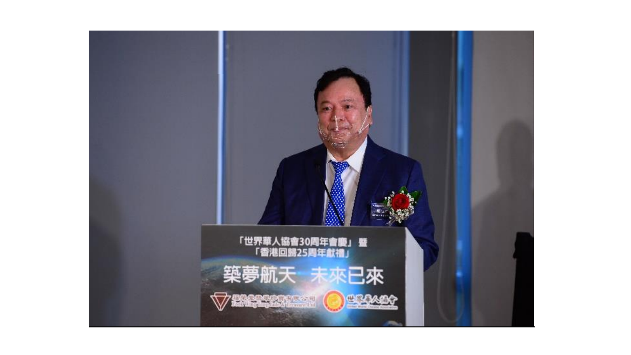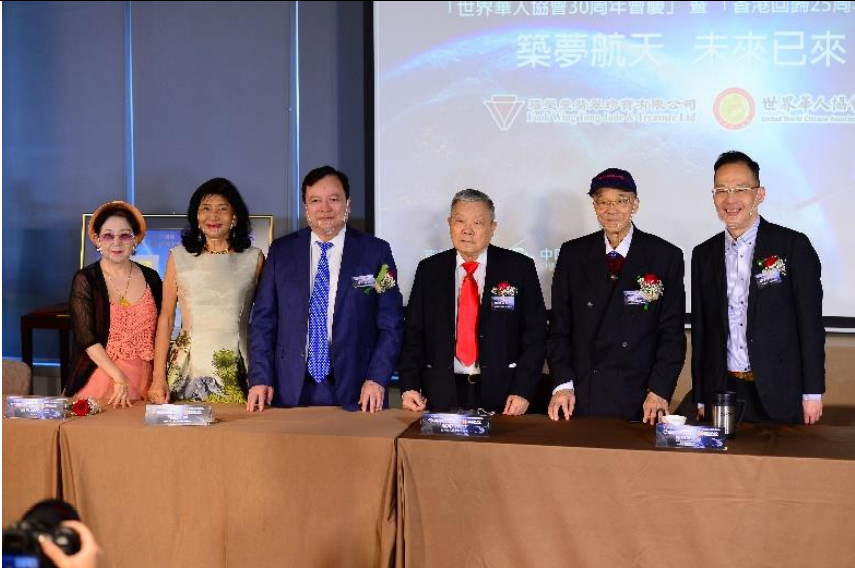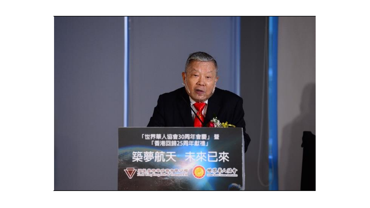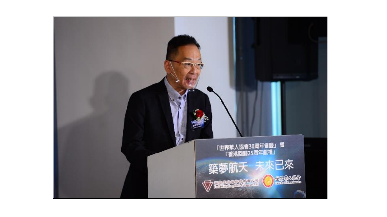 世界華人協會會長程萬琦博士介紹了世界華人協會30年的豐盛歷史,創會至今會員數目已經達至600萬, 遍佈180多個國家和地區,是目前全球最大最廣泛的華人華僑民間組織,集世界各領域頂級名人於一堂。而今年更是香港回歸25 周年,令協會 30周年會慶別具意義,並感謝中央政府對香港多方面的支持,希望未來中國人能更強大。程博士亦公布世界華人協會將於11月4日舉辦晚宴,呼籲大家繼續支持中國航天發展。