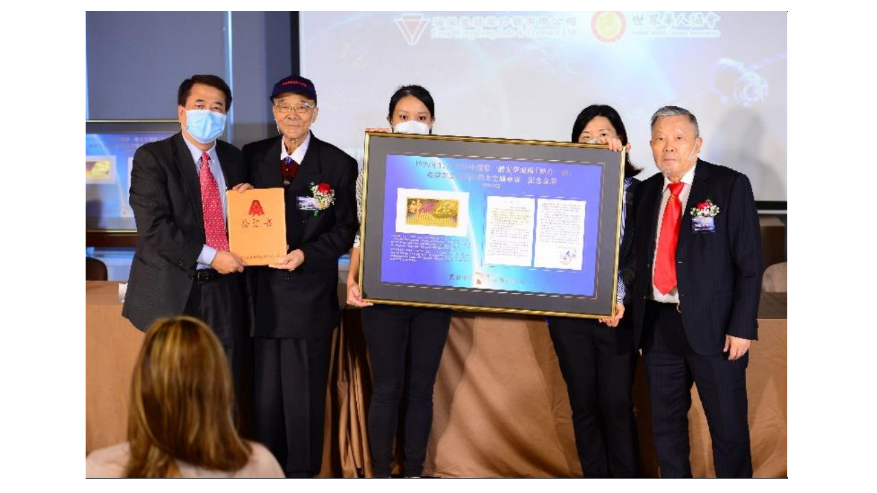 世界華人協會會長程萬琦博士和世界華人協會永遠榮譽主席周樹堂先生頒授紀念金牌予「中國航天事業推廣大使」。