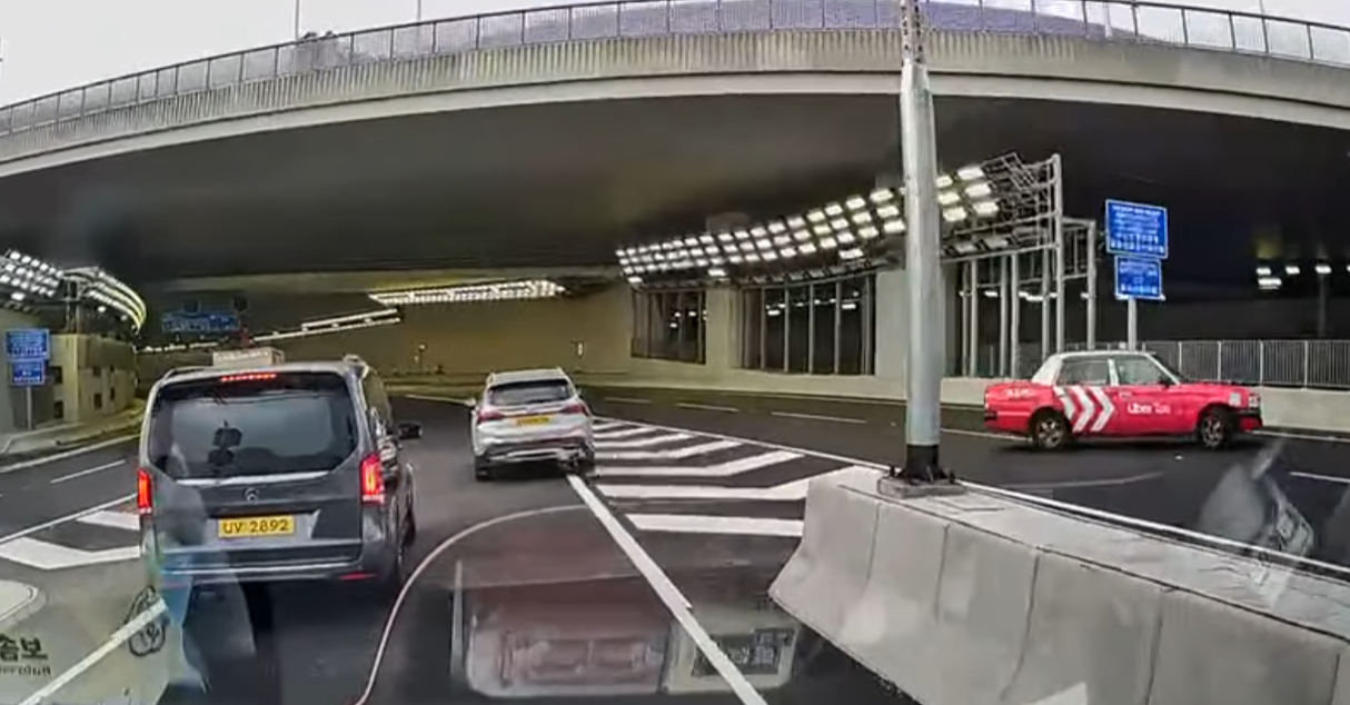 社交平台影片流傳,昨日早上有的士在中九龍繞道啟祥道及承啟道的入口,準備進入隧道時突收慢,「U-turn」到旁邊承昌道入口並逆線行車,與對頭泥頭車及田螺車刷身而過,場面驚險,有網民嘲諷是「大地任我行」。
