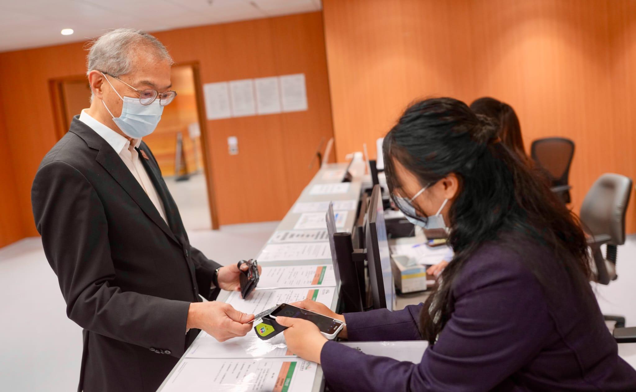 位於將軍澳百勝角路的中醫醫院今日(11日)起分階段投入服務。醫務衞生局局長盧寵茂早上出席升旗儀式,其後視察醫院準備情況,體驗病人使用服務流程,又到醫院地下大堂與到診市民交流。