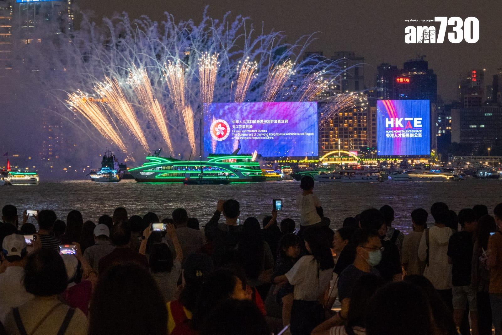 煙火表演在晚上8時正開始,但早在晚上7時半時已有大批市民在尖東海旁等待。有商界在煙火表演前,聯同附近餐廳向客人派發飲品券,使用期長至8月尾,期望可延續煙火盛事的氣氛。在尖東海旁的餐廳負責人認為本港需要更多同類型活動,以刺激市民及遊客消費;又指,很開心煙火表演如期進行,雖天雨或影響市民外出用膳的意欲,但今晚已安排現場舞蹈表演,和調製中東特色飲品;因此他仍認為今晚會全場爆滿,營業額會較平時日均9.2萬元高。
