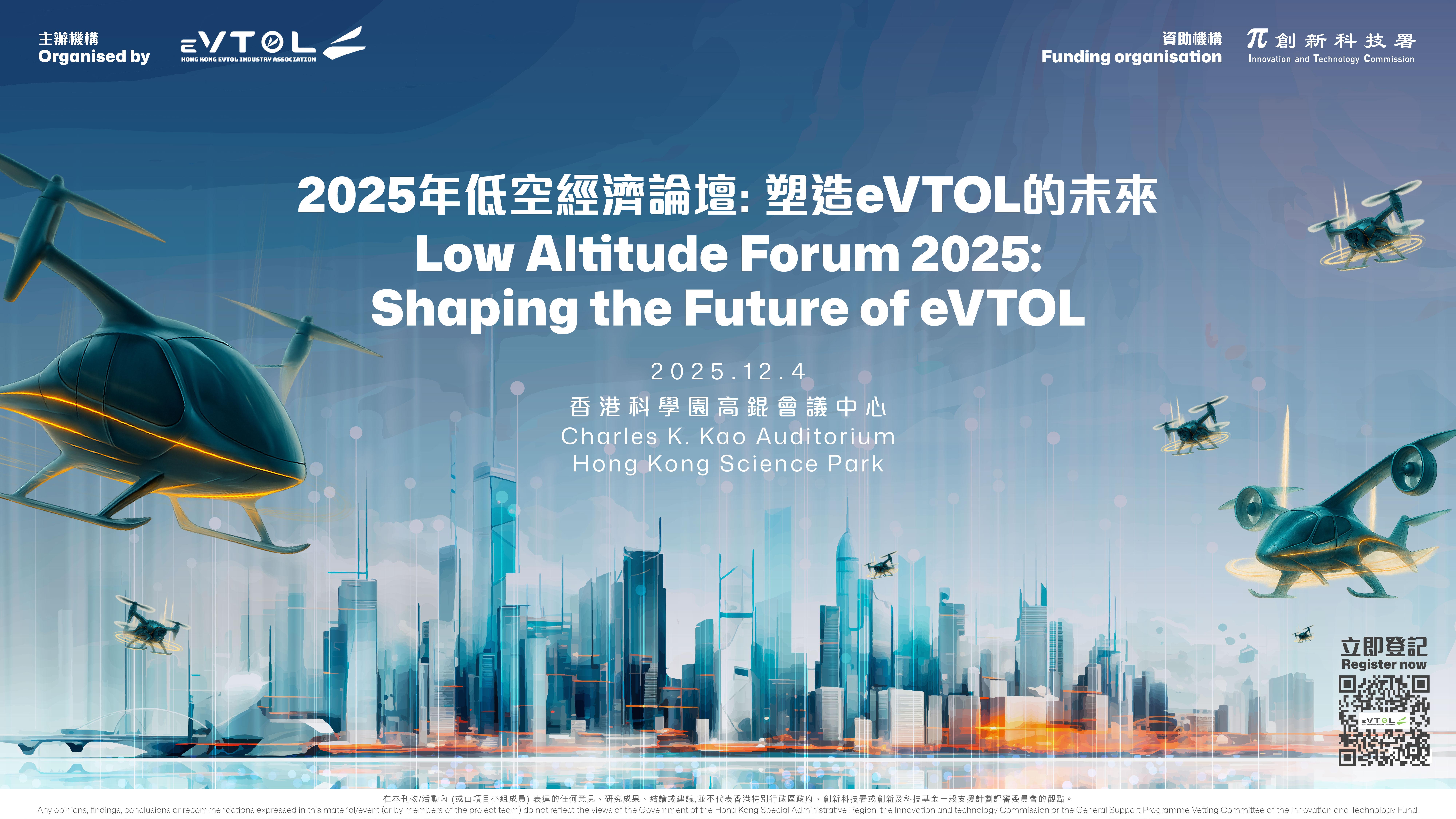 香港電動垂直起降飛行器商會將於下月4日在香港科技園舉辦「2025年低空經濟論壇:塑造eVTOL的未來」