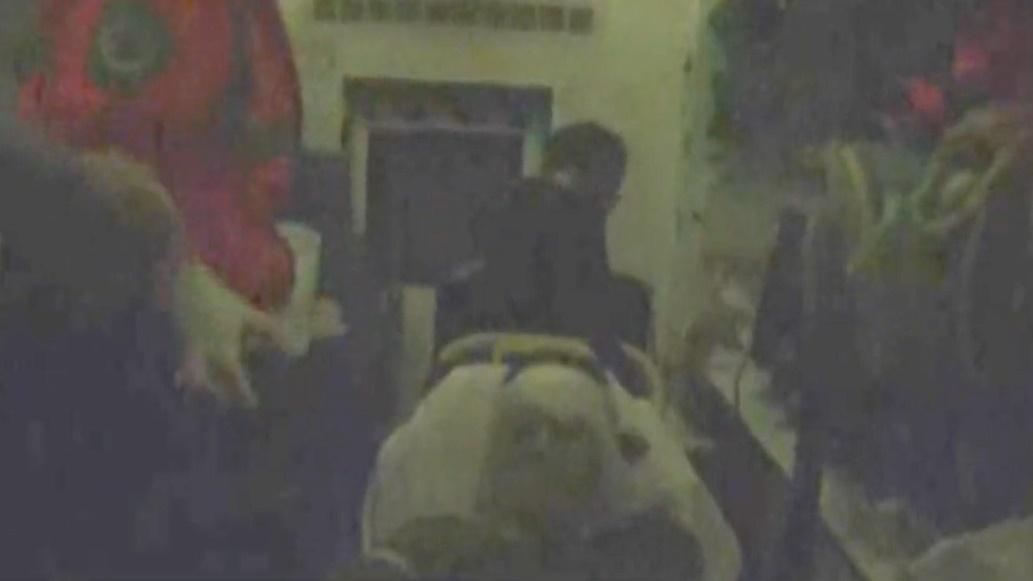 妻子面部被燙傷,面部須貼上敷料面膜。(電視截圖)
