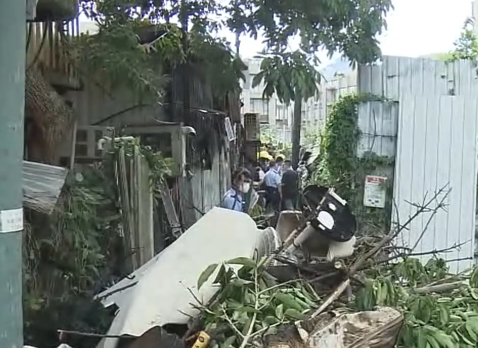 洪水橋大道村一間鐵皮村屋內,驚現一具燒焦遺體,警方等到場調查。