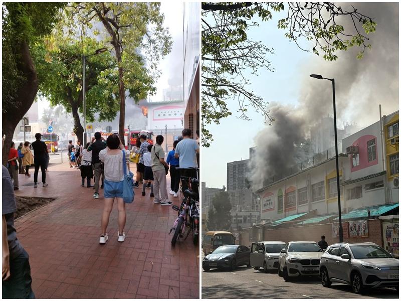 元朗安寧路幼稚園大火烈焰濃煙湧出,近300師生緊急疏散。(馬路的事 (即時交通資訊台) )
