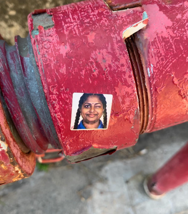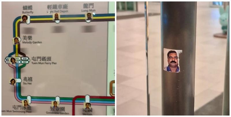 近期全港多處頻出現「印度人樣貼紙」,多名網民發現各區無論是街頭燈柱路燈、行人路地面、大廈升降機內、商店玻璃門,共享單車都能見到其蹤影。(Threads)