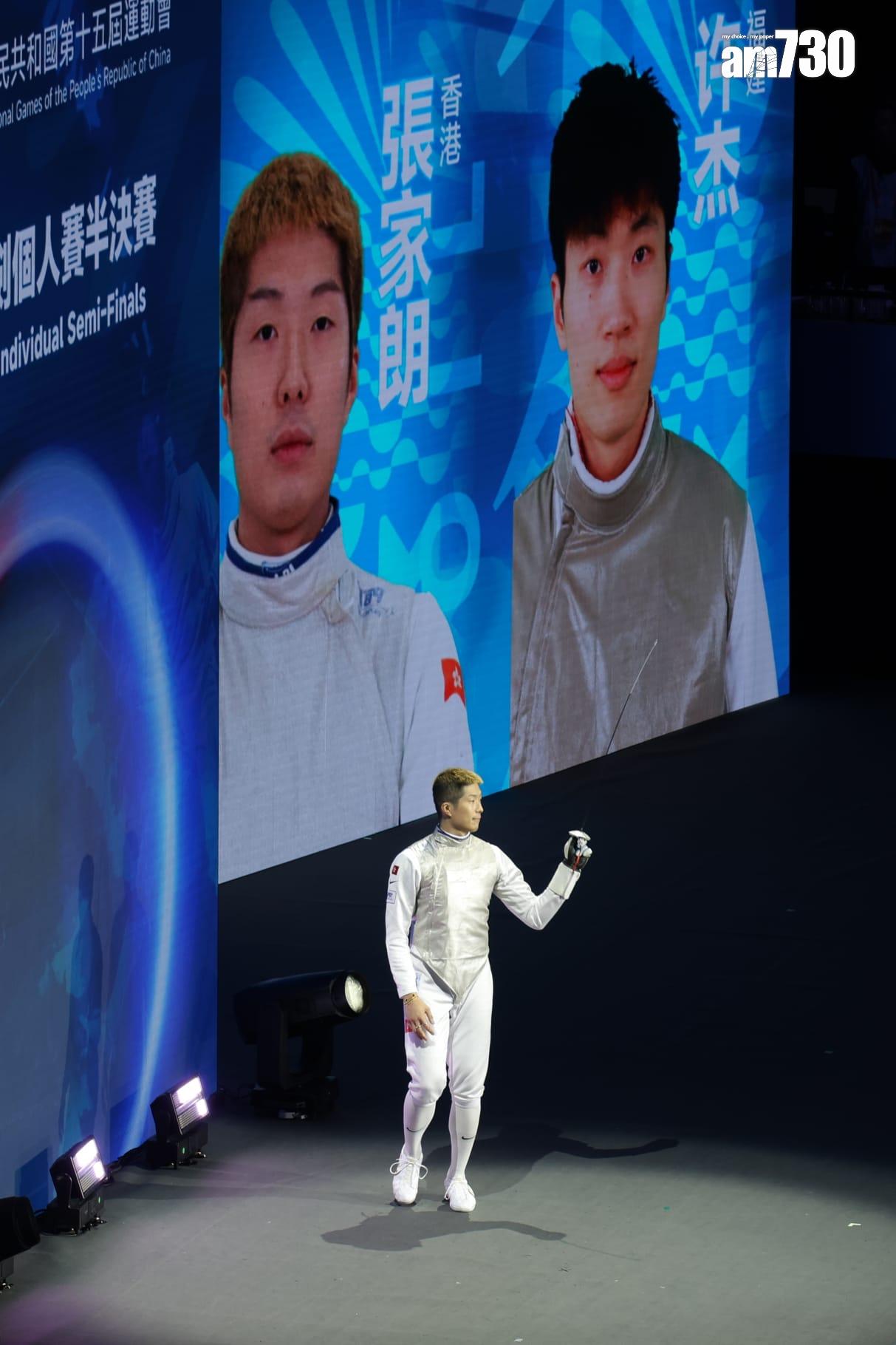 港隊劍擊代表張家朗在全運會男子花劍個人賽4強戰落敗,轉戰季軍戰,一開始便積極搶攻,最終用了一節時間,一面倒以15:2,擊敗以個人身份參賽的曾昭然,奪得銅牌。狀態神勇的許杰在決賽以15比13挫江蘇隊鄒天一奪金。