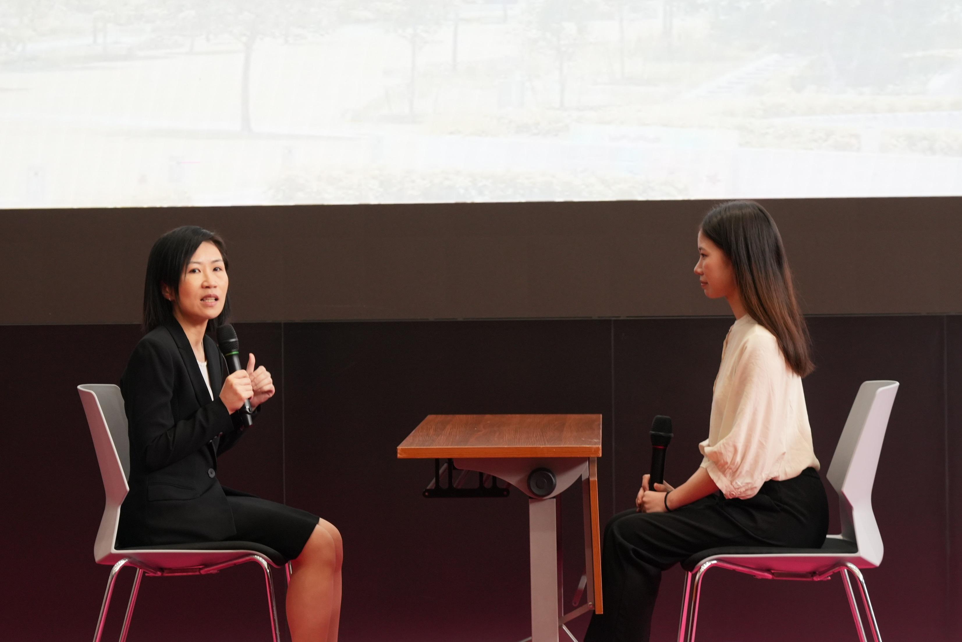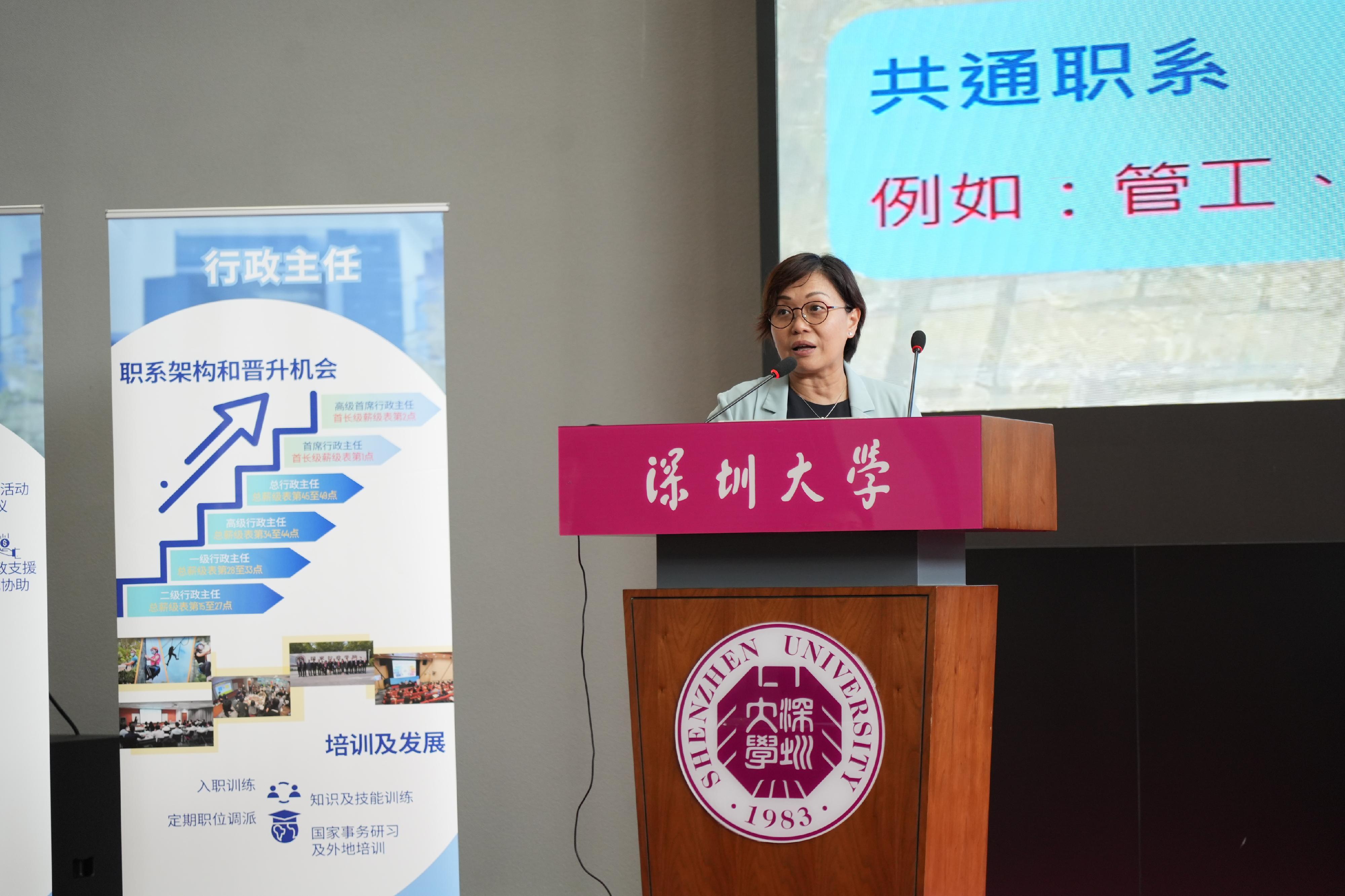 公務員事務局一般職系處長陳信禧在深圳大學向港生介紹政府的工作機會。