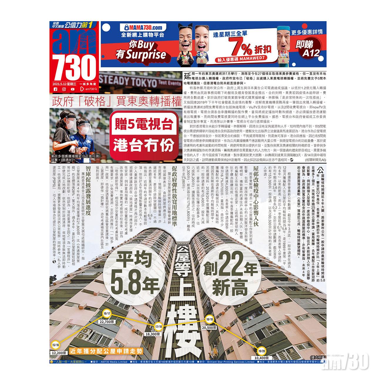 公屋輪候時間逼近6年大關,房委會昨公布一般申請的最新輪候時間達5.8年,攀至近22年高位,長者單人申請的平均輪候時間亦比「3年上樓」的目標多7個月,而現時有逾25萬宗公屋申請。當局解釋,去年編配工作受新冠肺炎影響,例如兩個大型屋邨一度改作檢疫中心,致住戶未能如期入伙。公屋聯會認為,政府應放寬空置校舍改作過渡房屋的標準;亦有智庫指,未來4年的公營房屋落成量較《長策》落後近三成,輪候時間難望縮短。