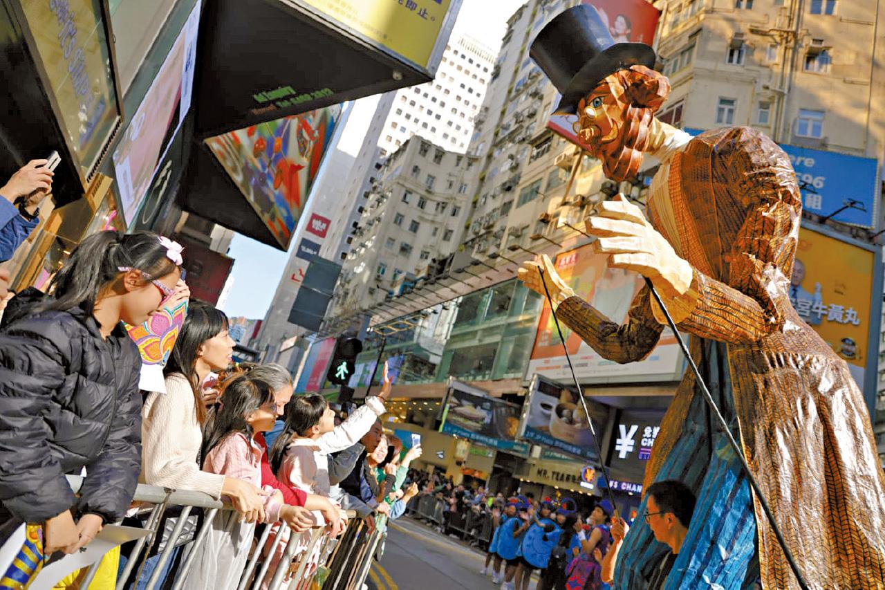 渣打藝趣嘉年華壓軸的大型巡遊昨在銅鑼灣上演,在宜人的天氣下,吸引更多市民在室外欣賞巡遊。(吳康琦攝)