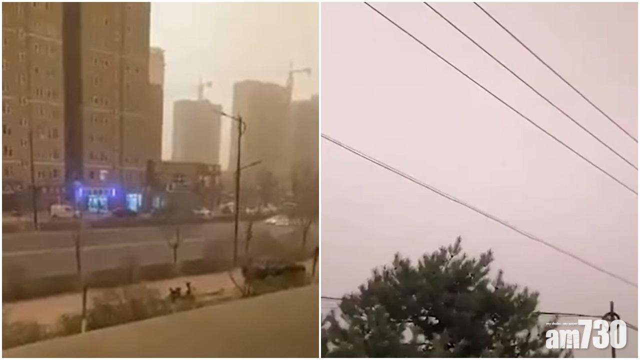 內地北京等地再遇沙塵暴襲擊,天空像蒙上了一層灰。(網片截圖)