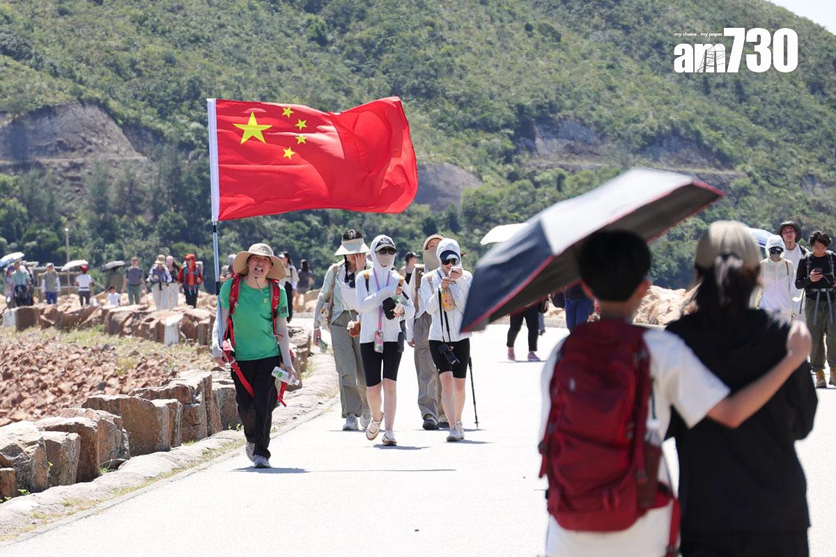 陸續抵達萬宜水庫東壩的遊客,不乏來自內地的旅客,部分人更帶同國旗到場揮舞和與美景合照。來自杭州的張小姐會在香港逗留5日,首4日行程目標是行完全段麥理浩徑,最後一日就計劃在市區逛逛,解釋來港非常方便,所以選擇在港度過黃金周。首次來港的她直言,萬宜水庫的景色非常美麗,自己非常享受在此步行的過程,預期會在徒步及相關開支花5,000元人民幣,另有2,000元人民幣買手信。