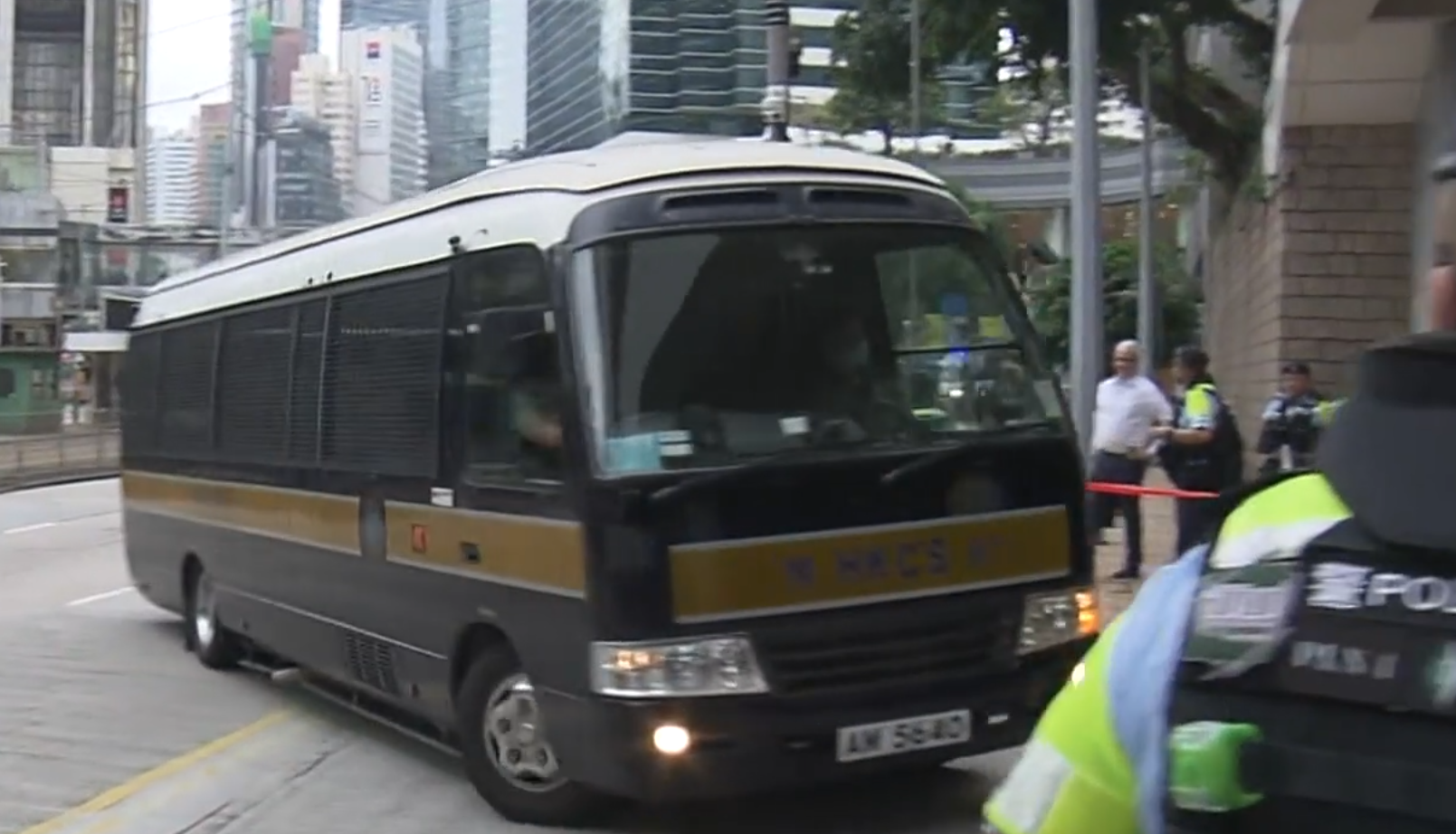 2020年爆炸品案3名被告串謀爆炸罪成,判囚16年8個月至18年。3名被告由囚車押送到高等法院。(now新聞台畫面)
