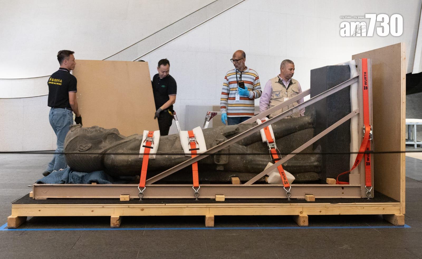 本港歷來最大規模、內容最全面的古埃及文物珍藏展,將於下月起於香港故宮文化博物館展出;今日於博物館中庭舉行文物開箱儀式,當中包括首批、三座重要巨像,意味今次珍貴文物佈展工作正式啟動,迎接下月展覽開幕。