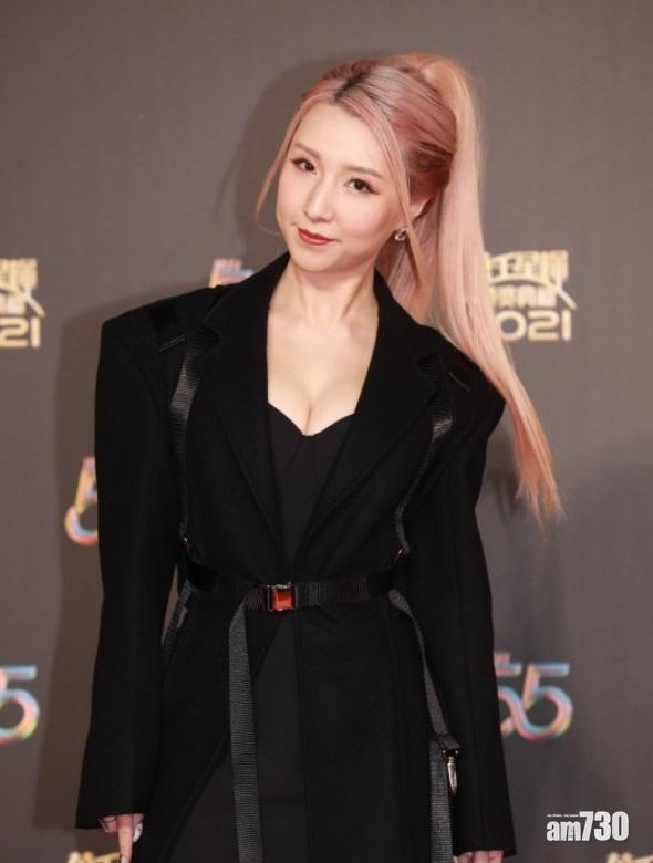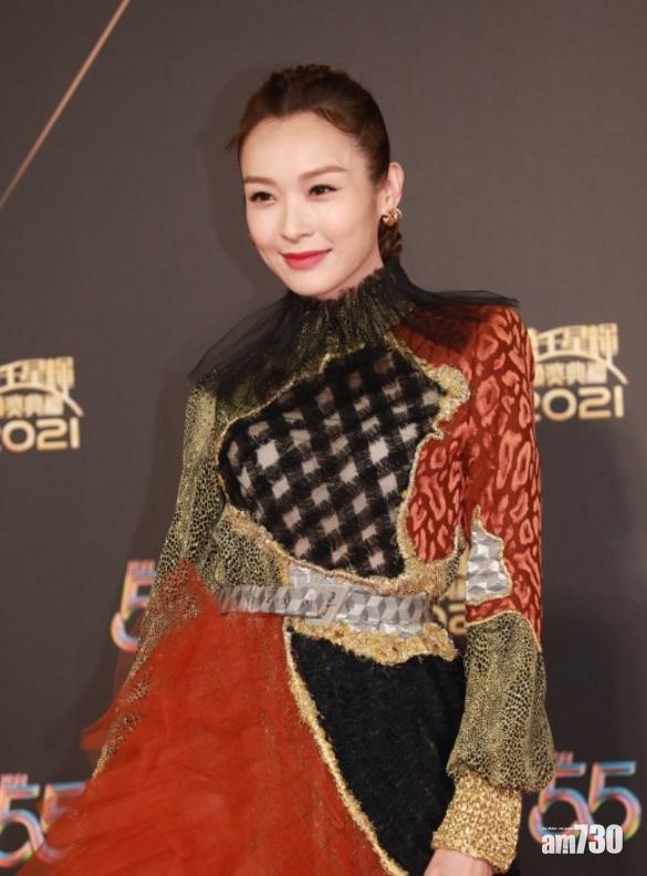 《萬千星輝頒獎典禮2021》於今晚8點在電視城舉行,鍾嘉欣提早回港為奪視后做準備,她以中性打扮亮相紅地氈,但內以透視魚網加bra top上陣,有型有款。她表示已經很久沒試過著高踭鞋出席活動,非常不習慣出席頒獎禮。