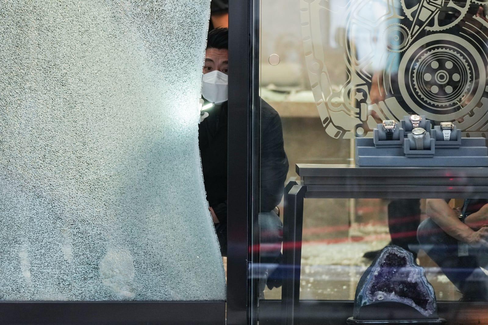 據悉,整個搶劫過程僅約2至3分鐘,其中1人假扮客人按鐘,待職員一開門,另外3人隨即闖入,以兩把西瓜刀指嚇職員,並以鐵槌扑爆飾櫃,隨即掠去一批名錶後,登上一輛銀色私家車,往漆咸道南方向逃去。