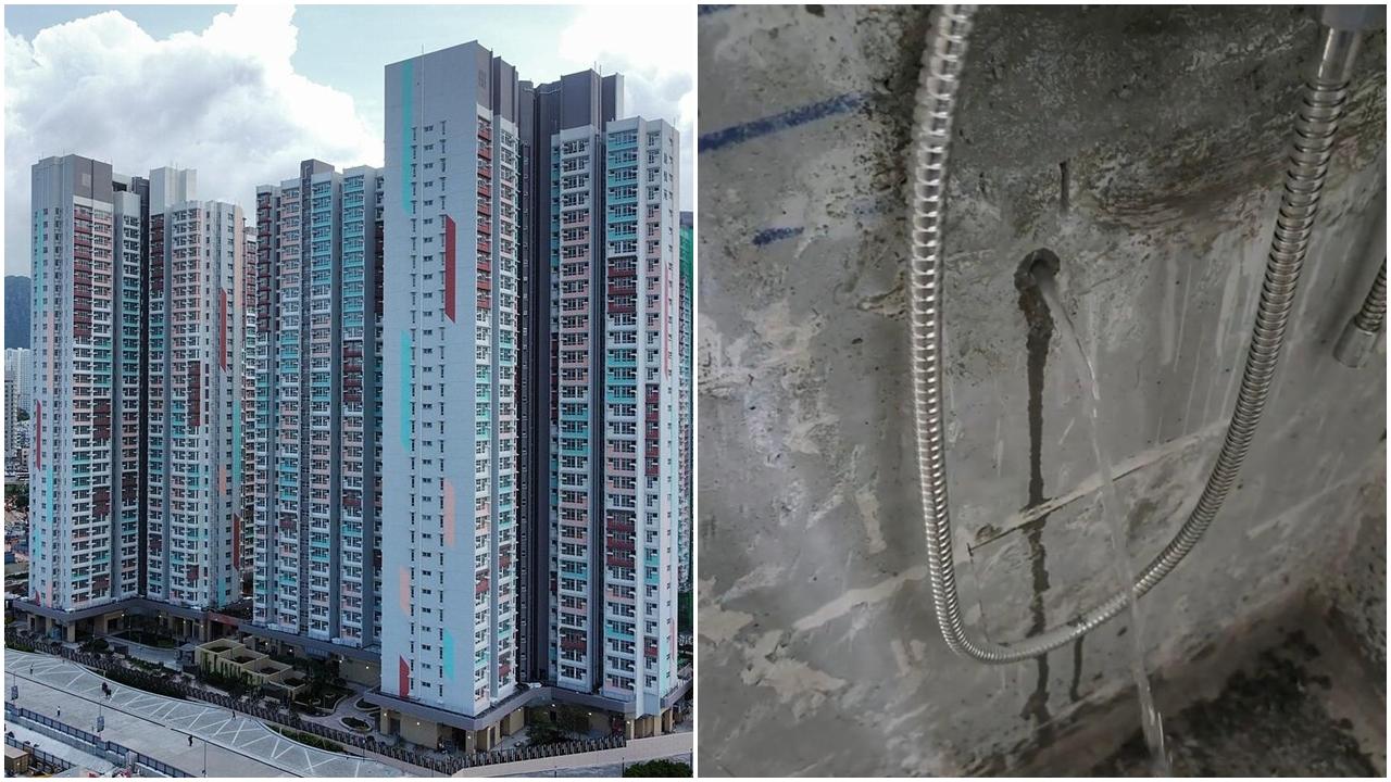 有網民在社交平台上發文,在疑似啟悅苑一尚未入伙的單位,牆身布滿水跡,並質疑居屋手工。片段中更見有水柱從牆身流出。