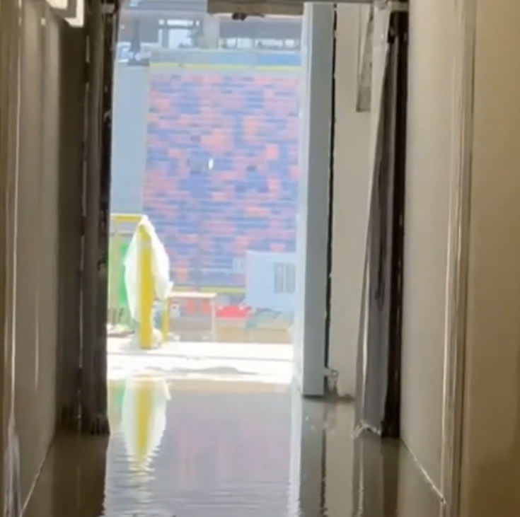 《有線新聞》取得體育園的影片顯示,天花板出現漏水情況,地下亦有積水。上周一曾視察體育園的立法會議員鄧家彪稱,當時未獲安排參觀涉事位置,園方亦未透露曾出現漏水。