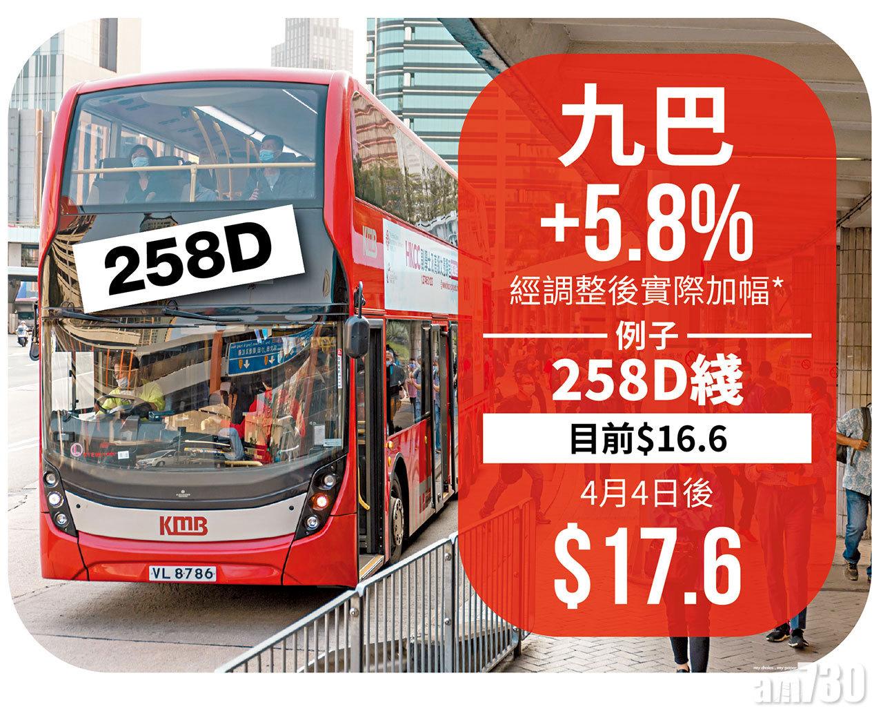 另一方面,由去年7月起至今年中,政府對「公共交通費用補貼計劃」每月交通開支水平由400元放寬至200元,因今次巴士加價對公眾帶來的經濟壓力,決定延長多6個月至年尾,並在下月1日起,提升補貼上限由400元加至500元。長者及合資格殘疾人士「2蚊優惠」不受加價影響。