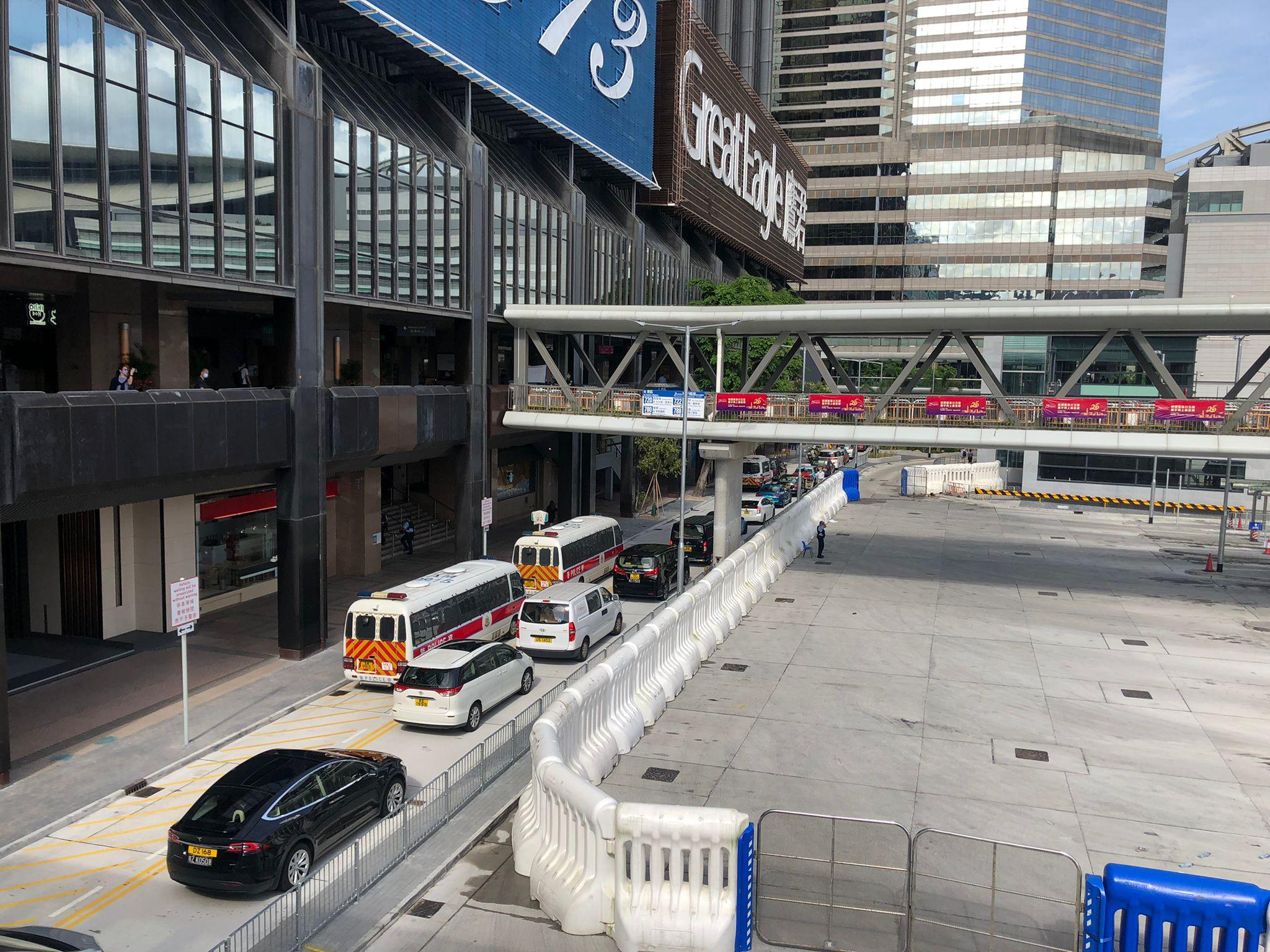 另外,中環林士街天橋有指示牌,提醒司機灣仔北封路,中環灣仔繞道中環入口,不准車輛駛到灣仔北的行車線;立法會附近亦設置水馬,警員截停車輛,包括傳媒採訪車,檢查車內情況,以及要求打開車尾箱;港灣道近灣仔運動場亦有部分路段封閉,警方截停車輛檢查;金紫荊廣場一帶封閉,車輛不准駛入。