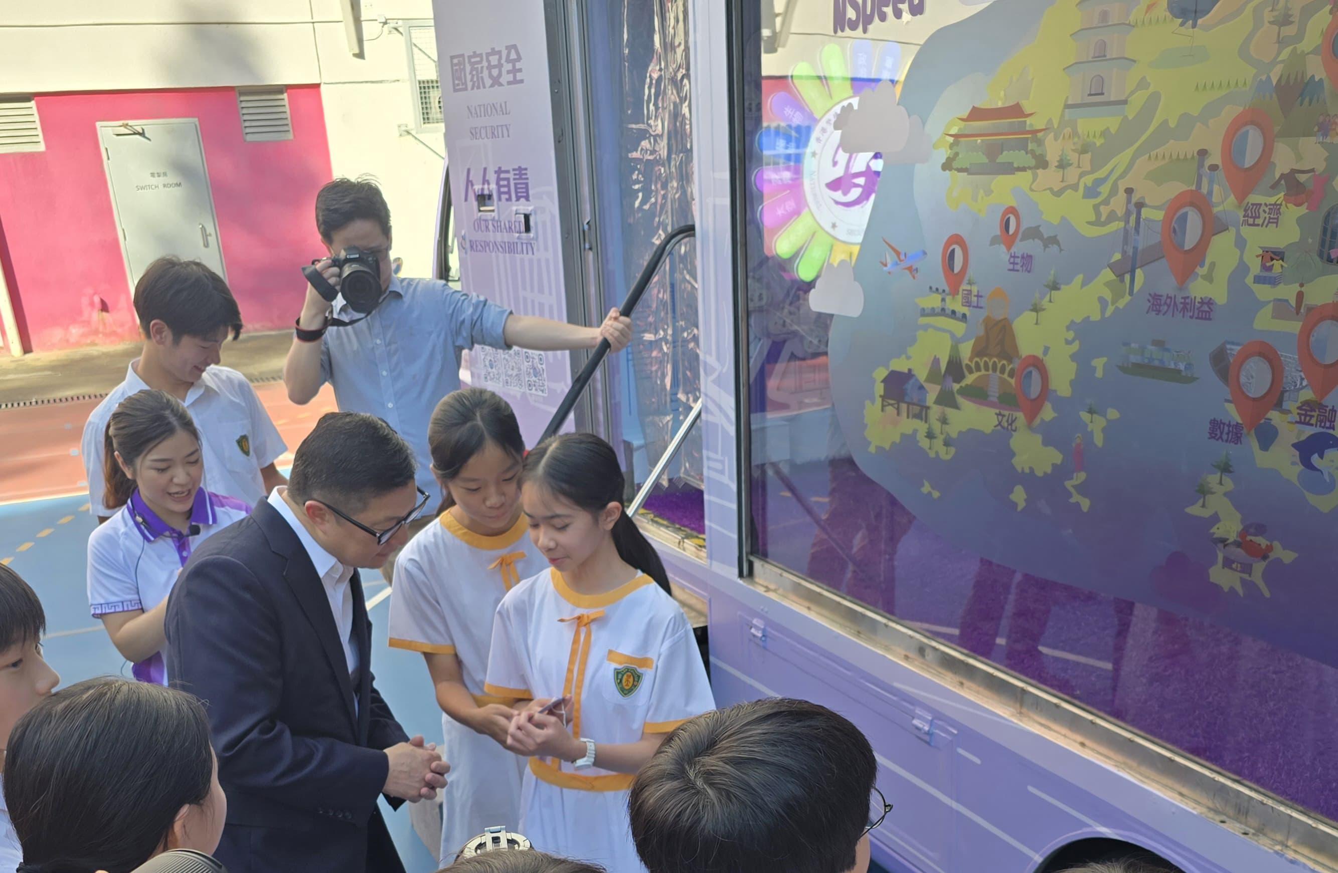 宣傳車到訪黃大仙可立中學,保安局局長實地了解宣傳車的推廣工作並與學生交流。