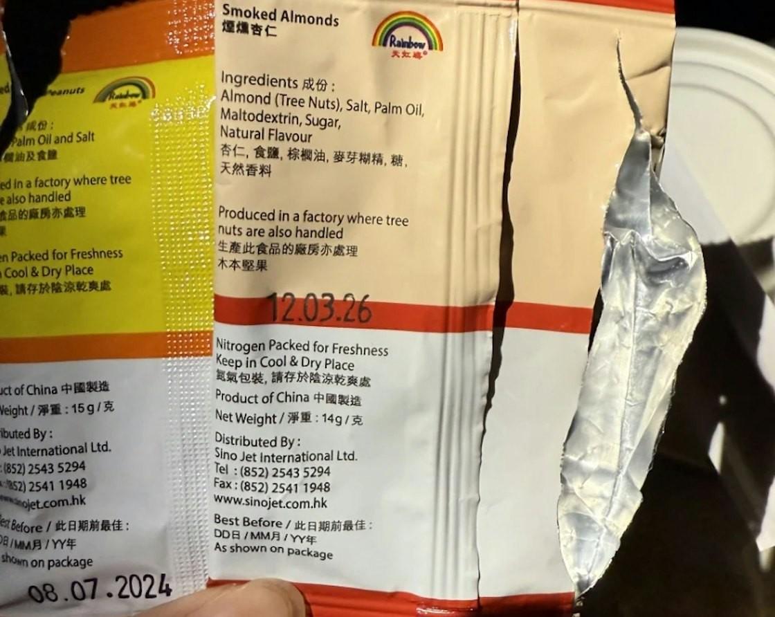 女子轟國泰向小朋友提供過期10個月花生(小紅書圖片)