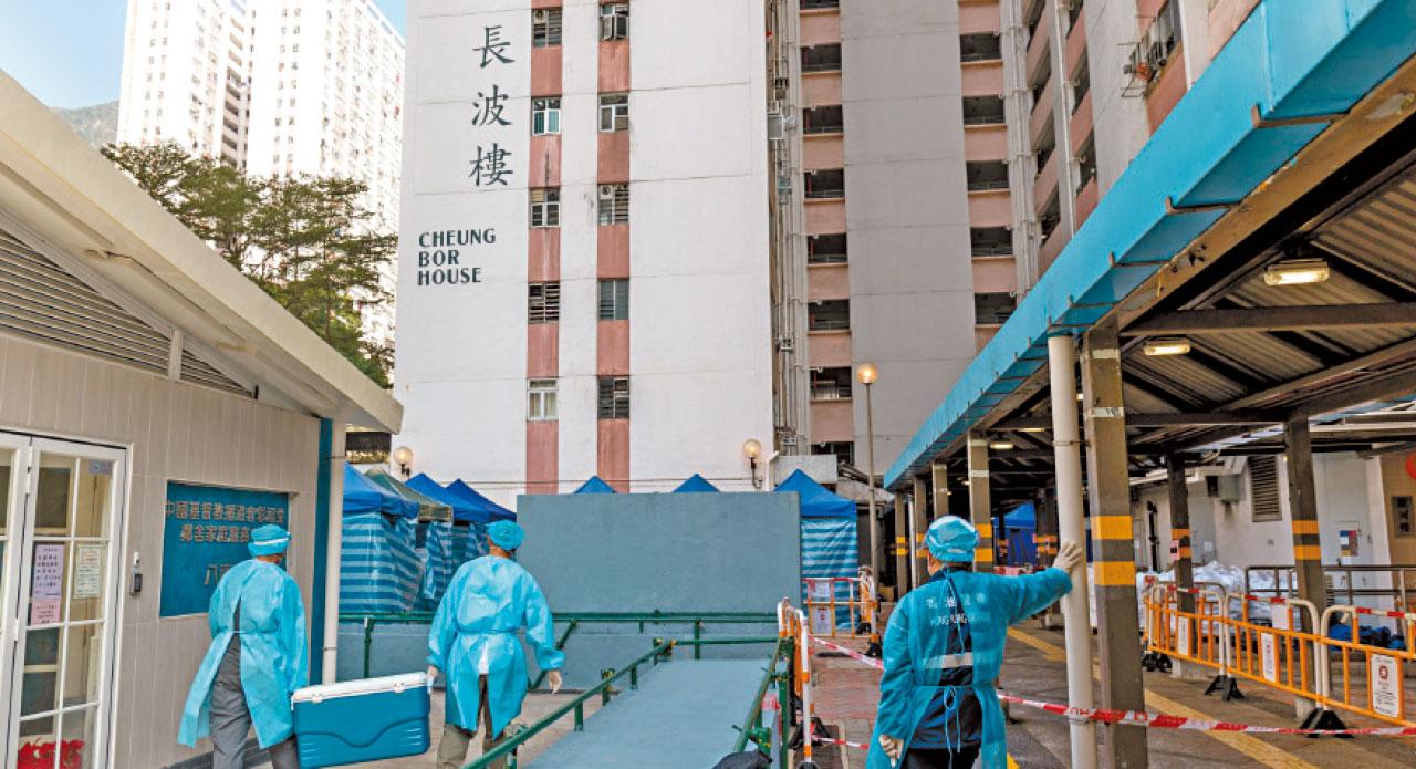 長波樓疑同時出現垂直及橫向傳播,大廈要圍封多一日。(莊振邦攝)