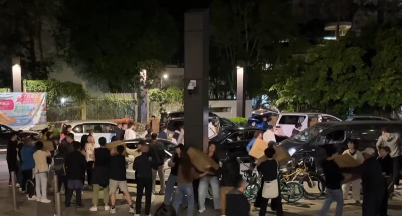 大埔宏福苑五級火,大批巿民自發支援,深夜組人鏈運送物資。(FB/大埔TAI PO)