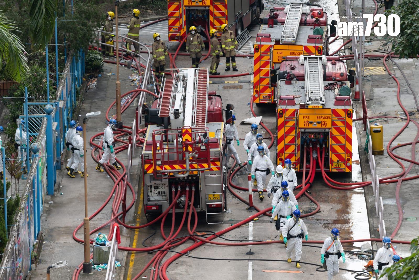 消防處副處長陳慶勇稱,除4個仍在滅火的單位外,其他單位需要灑水降溫避免死灰復燃,之後將會全力救援,包括處理餘下25個求助個案,部分位於宏昌閣及宏泰閣的較高層位置。由於大廈部分情況有「翻燒」情況,消防要在不同地方灑水降溫。