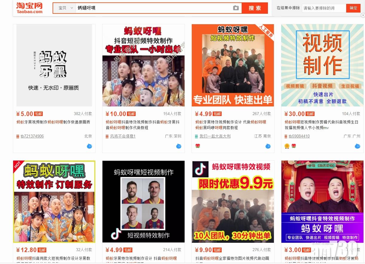 淘寶網上有大量代客製作「螞蟻呀嘿」短片的網店。(互聯網)