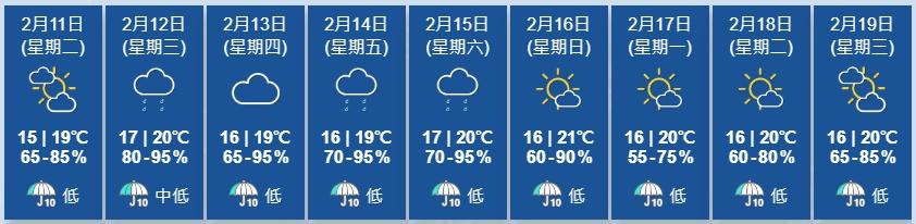 天文台表示,一股偏東氣流正影響廣東沿岸。同時,一道雲帶覆蓋該區。本港地區今日天氣預測大致多雲。日間短暫時間有陽光,最高氣溫約19度。晚上有一兩陣微雨。吹和緩至清勁偏東風。