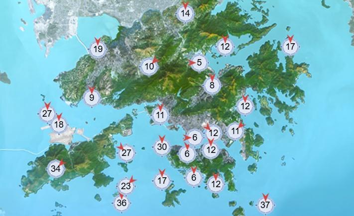 天文台料本港今日吹和緩至清勁北至東北風,初時離岸吹強風。(香港天文台)