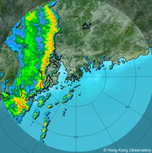 【10:25更新】天文台在早上10時20分發出特別天氣提示,指位於珠江口以西的強雷雨帶正為該區帶來大驟雨,雷暴及強陣風,預料會在中午前後影響珠江口一帶,市民應提高警惕。