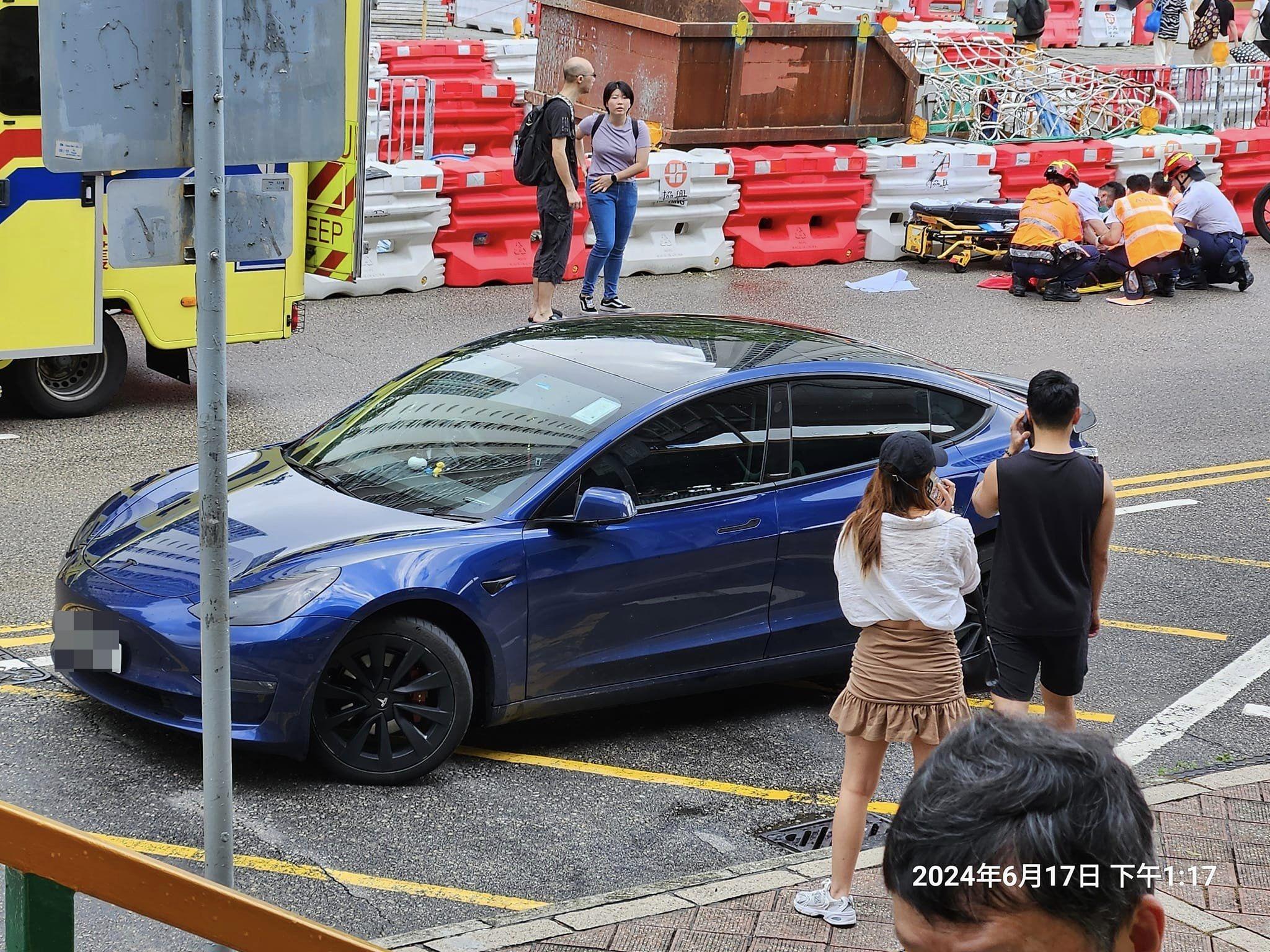 今日(17日)下午1時06分,一輛Tesla電動車沿天福路往流浮山方向行駛,至天水圍港鐵站附近,將一名18歲姓張女途人撞倒。電動車車頭擋風玻璃、右邊倒後鏡及車身均有凹陷及損毀,地下遺下一隻波鞋及少量血跡。有途人發現後立即報警。