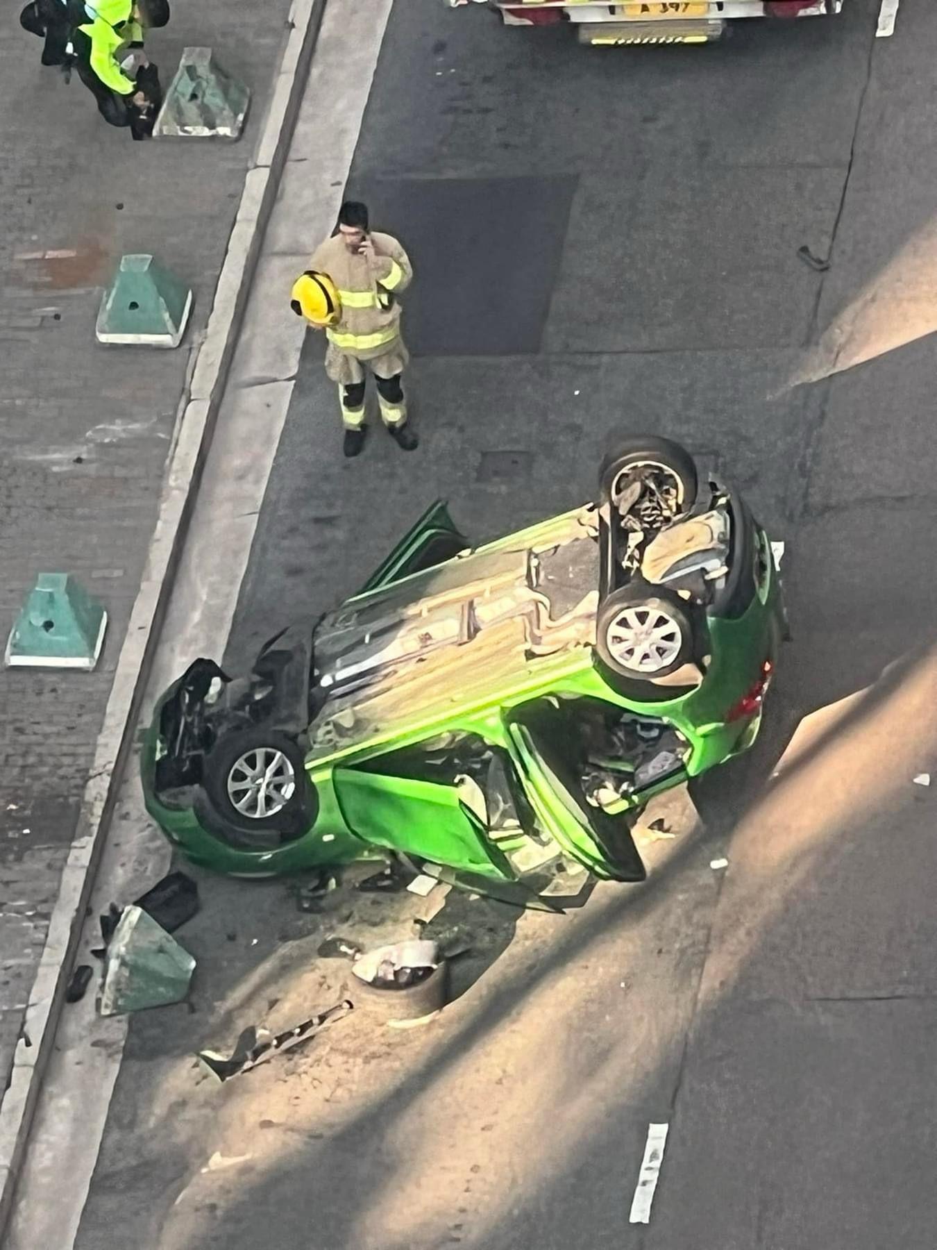 筲箕灣發生車禍,一輛私家車「反肚」!