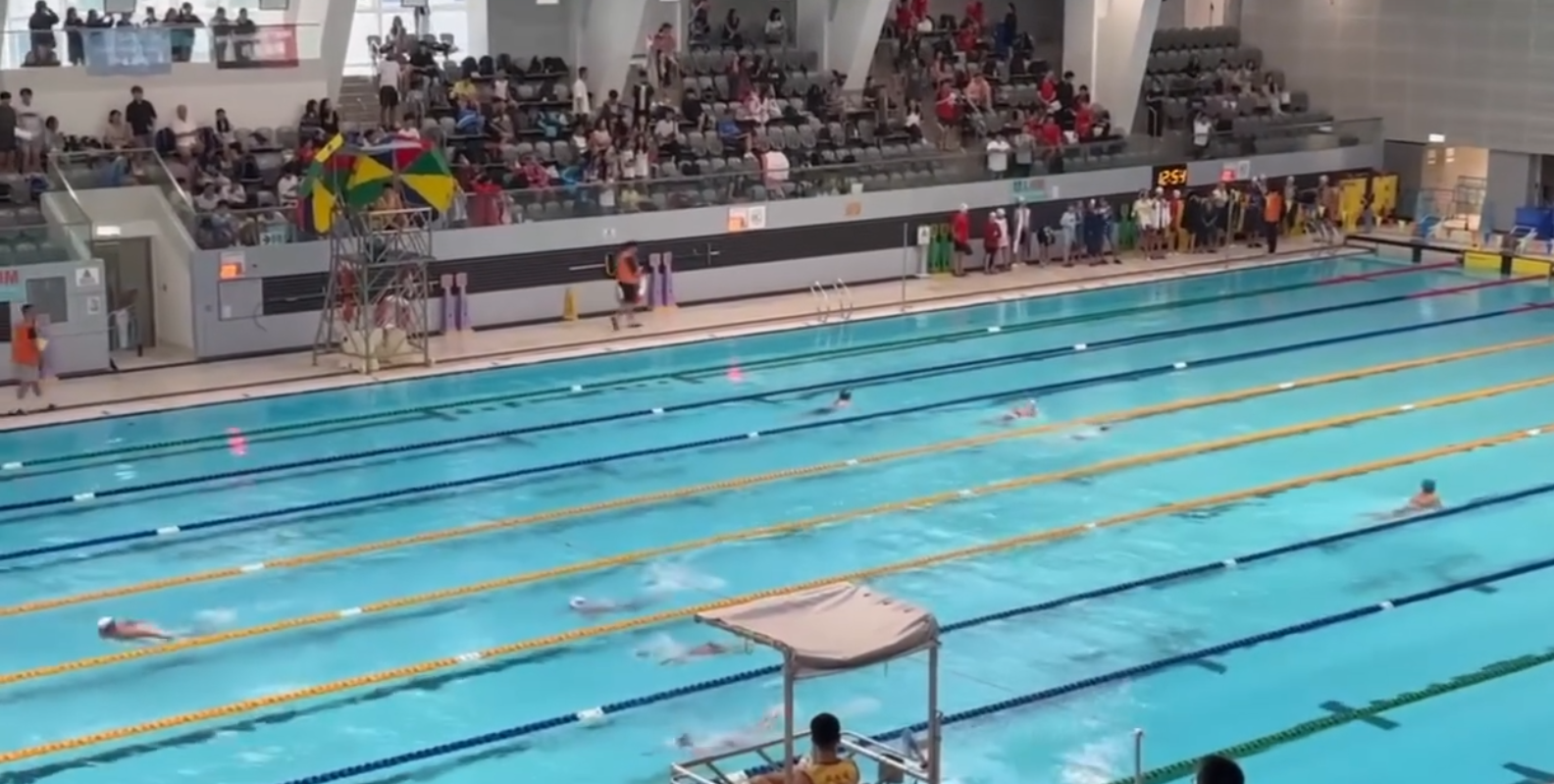 網民在社交媒體分享片段可見,5名出戰女子100米蛙泳的選手從畫面左面開始游,而同時4名出戰男子50米蝶泳的選手則由相反方向出發。兩組選手在同一泳池同時比賽,險些迎面「碰撞」。學體會表示,幸好沒有任何選手受傷。