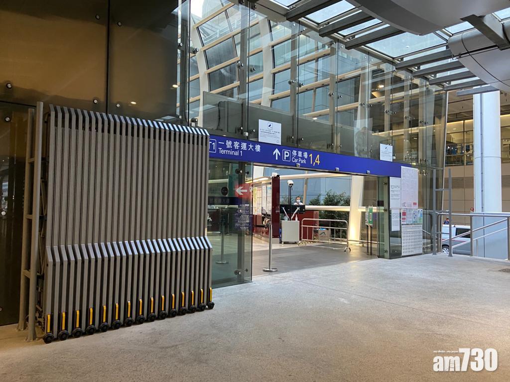 在香港國際機場客運大樓外擺放逾年的大型水馬,近日終於移走,原有閘口已改為設置可摺疊式電閘。昨(18日)仍有保安檢查進入客運大樓人士的證件,但人手已較前往減少。
