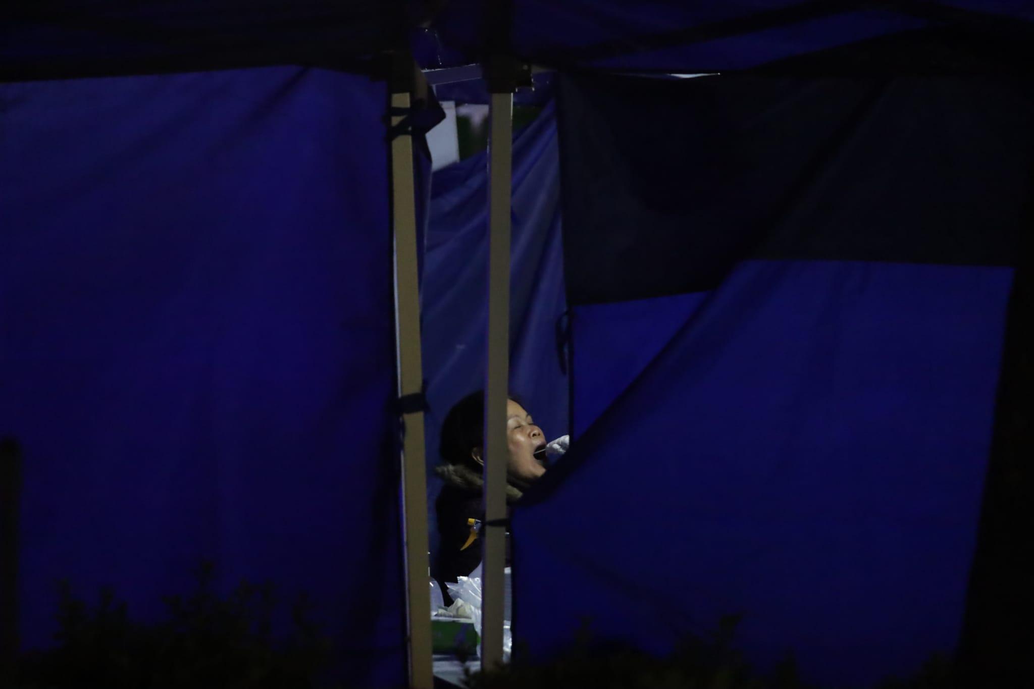 馬鞍山頌安邨頌和樓圍封檢測。(林俊源攝)