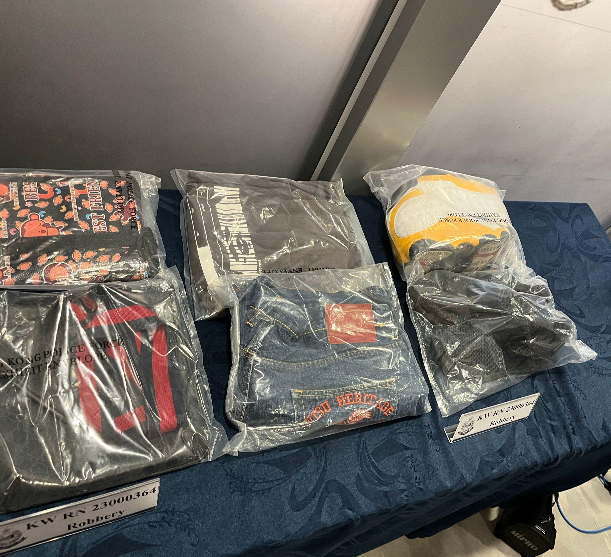 西九龍總區重案組第三隊重督察周家文今日講述案情時表示,上周四(6日)下午2時20分,麼地道發生一宗搶劫案,3名蒙面匪徒持鐵錘及利刀闖入一間錶行,打破飾櫃並掠去10隻手錶,總值約港幣360萬元。匪徒隨即登上一輛停泊在門外接應的私家車逃去。案件中並無人受傷。其後,警方在紅磡區發現匪徒棄置的接應車輛,當時該私家車被套上一對假車牌,同時在附近尋獲鐵錘、利刀及一些衣物。