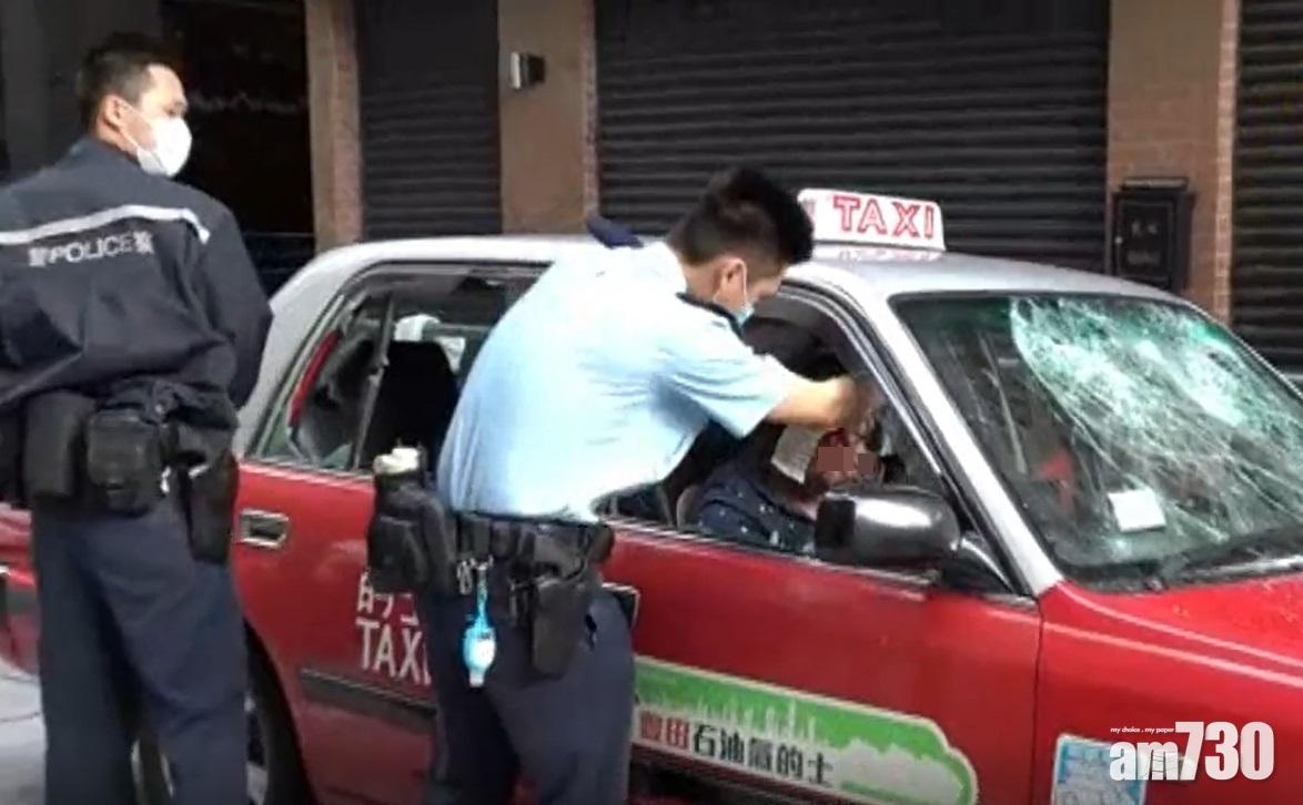事後的士司機頭破血流,在車上接受警員包紮。(新聞截圖)